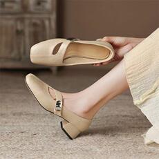 法式复古方头浅口单鞋女玛丽珍鞋2026新款百搭软皮小皮鞋粗跟女鞋