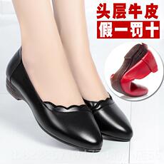 新款202大5年春秋牛新款筋软底码女皮鞋复妈妈鞋休闲中老年软皮单