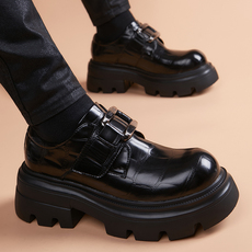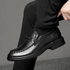 大头皮鞋男真皮英伦风厚底增高男鞋一脚蹬商务休闲黑色工作鞋