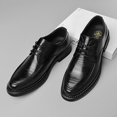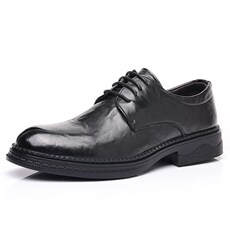 德比皮鞋男士工作服手洗磨旧牛津鞋高趾7厘米隐形增高鞋男士尖头