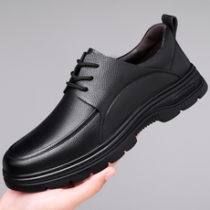 头层牛皮男鞋2025秋季新款系带商务休闲皮鞋轻便耐磨中老年爸爸鞋