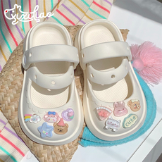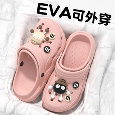 细细条 可爱卡通儿童玛丽珍洞洞鞋厚底夏季亲子外穿包头半拖鞋女