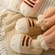 可爱猫爪加厚毛绒亲子包跟棉鞋情侣冬季居家室内防滑保暖棉拖鞋