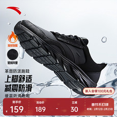 安踏轻质皮面加绒男鞋跑鞋冬季黑色软底减震防滑跑步鞋轻便运动鞋