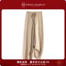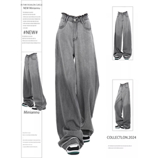 NEVA HU灰色休闲加绒卫裤阔腿裤女松紧腰抽绳裤子宽松拖地长裤