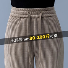 大码女装胖mm灰色高级感羊羔毛加厚休闲裤女冬季保暖显瘦阔腿裤子