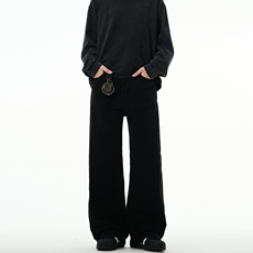 MADWITCH黑色cleanfit宽松直筒牛仔裤美式复古微喇vintage裤子男