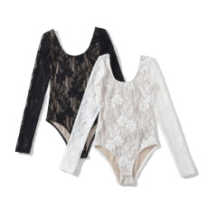 欧美风圆领蕾丝连体衣女秋季外穿浮雕镂空紧身性感打底衫连裆上衣