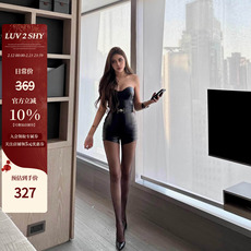 LUV2SHY 现货 巨显身材 pu皮胸垫抹胸金属腰带修身连体衣短裤性感