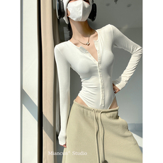 MianCun美式亨利领白色修身长袖T恤女秋季新款紧身连体上衣打底衫