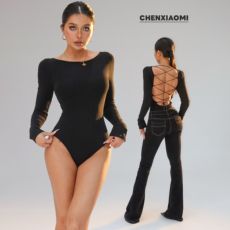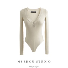 Long sleeved V-neck bodysuit 欧美风性感紧身长袖V领连体衣女士