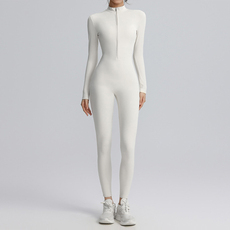 欧美爆款冬季加绒连体衣瑜伽服长袖保暖外穿健身运动连体紧身衣女