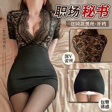 情趣内衣深V秘书制服蕾丝套装包臀裙网红连体睡衣纯欲风性感睡裙