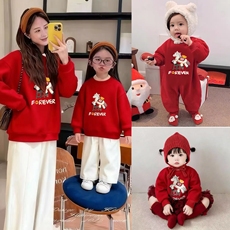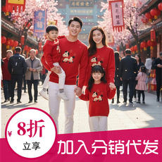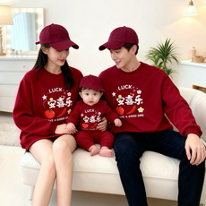 棉致亲子装一家三口过年衣服新年本命年红色马年卫衣冬儿童拜年服