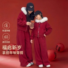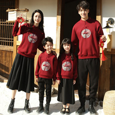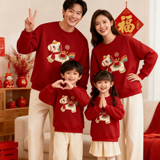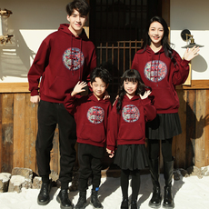 2026马年新款拜年服亲子装一家三口高级感秋冬装加绒卫衣母子母女