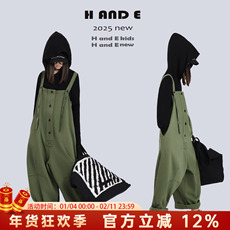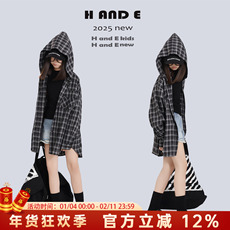 H AND E 原创童装2025秋季设计感运动连帽黑冲锋衣外套男女童亲子