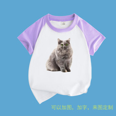 猫咪呆萌可爱猫猫铲屎官动物卡通亲子装短袖T恤衫男女儿童半截袖