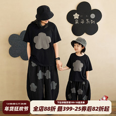 砚台家童装A类短袖T恤夏新款宽松洋气母子款亲子装半袖裤子两件套