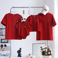 马年全家福亲子装一家三口夏季短袖2026新款婴儿爬服母女洋气t恤
