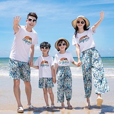 砚台家男童亲子装母子款休闲两件套2025夏新款短袖T恤七分裤套装