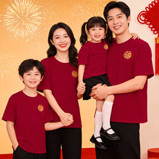 马年亲子装t恤一家三口2026过新年本命年短袖全家男女儿童拜年服