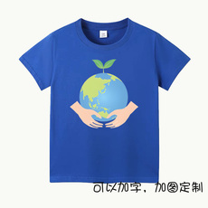 男女学生世界爱护保护环境绿色地球短袖T恤夏亲子衣服儿童装班服9