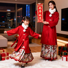 新年拜年服亲子装中国风龙凤红色棉服汉服母女装宝宝儿童加厚唐装