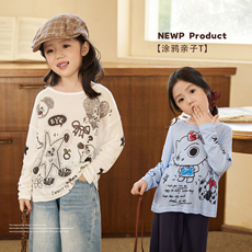 小O宝Okids童装 宝宝涂鸦长袖t恤女薄2025秋季新款女童亲子装上衣