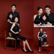 影楼新款全家福主题服装一家三口中国风旗袍新中式亲子装摄影礼服