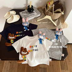 【亲子装】纯棉夏季新款2026潮牌男童立体兔子警官短袖T恤打底衫