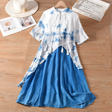 gugumini童装夏女大童气质优雅全棉提花新中式亲子长款连衣裙