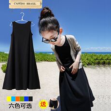 女童装沙滩连衣裙儿童纯棉背心吊带中大童长裙子海边度假亲子装潮