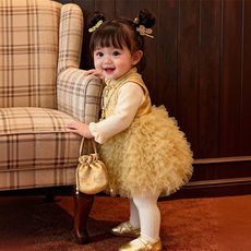 IVY HOUSE常春藤儿童装女童春季款 法式鎏金气质连衣裙外套亲子装