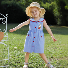 2026小宝宝裙子CS夏季儿童卡通小兔小鹿刺绣格子海军领连衣裙