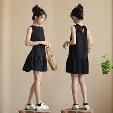不退换日系贵品无袖凉爽连衣裙设计感强女童中大童可亲子