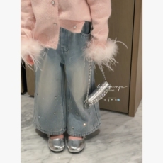 Spring韩国童装2026年冬季新款亲子烫钻牛仔喇叭裤女童加绒休闲裤