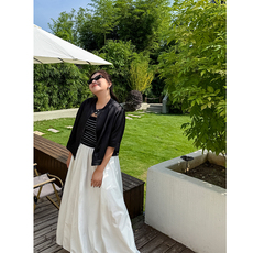 福饮沸别春上新【墨玉初雪】大码胖mm百搭休闲法式A字长裙子2763