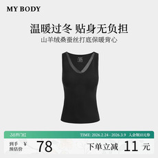 商场同款MYBODY2025冬季新款保暖背心女桑蚕丝山羊绒蕾丝V领打底