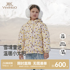 【商场同款】英氏女童羽绒白鸭绒冬季保暖防寒满印休闲外套超韧绒