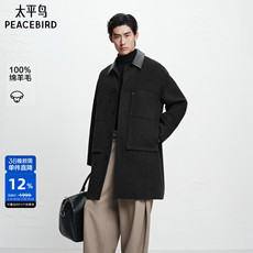 【商场同款】太平鸟男装休闲毛呢大衣巴恩风PU领大衣 B1AAF4414@