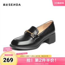 森达通勤鞋女秋新商场同款马衔扣粗跟单鞋XQK01CA5