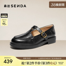 森达真皮乐福鞋女26春季新款商场同款英伦通勤皮鞋黑色单鞋4XT29