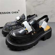 商场同款百田森厚底乐福鞋女2026春季新款黑色皮鞋水钻学院风单鞋