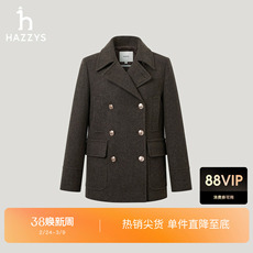 【商场同款】Hazzys哈吉斯秋季女时尚短款双排扣毛呢大衣