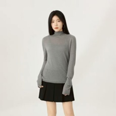 哥家商场同款2025秋冬半高领针织衫微透半高领打底衫女纯色538092