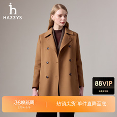 【商场同款】Hazzys哈吉斯中长款呢大衣女年冬季羊毛外套