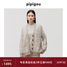 PALUOPO/帕罗商场同款RED红标】秋冬圆领纯羊绒小清新开衫毛衣女