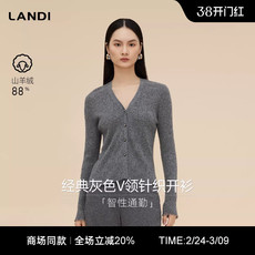 [商场同款]LANDI智性通勤深灰色V领山羊绒针织开衫女2025冬新品