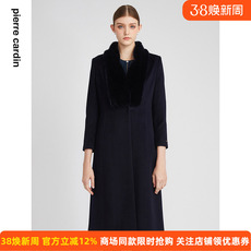 商场同款皮尔卡丹女装毛呢外套秋冬季新款羊绒大衣貂毛领上衣