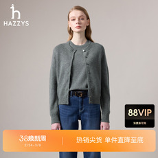 【商场同款】Hazzys哈吉斯针织开衫女秋季舒适纯色羊绒衫